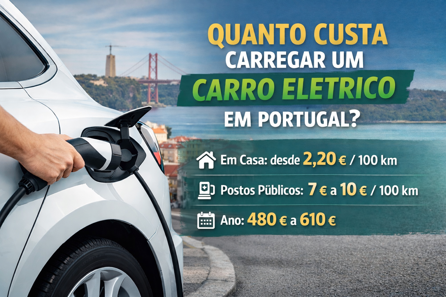 Quanto Custa Carregar um Carro Elétrico em Portugal (2026)