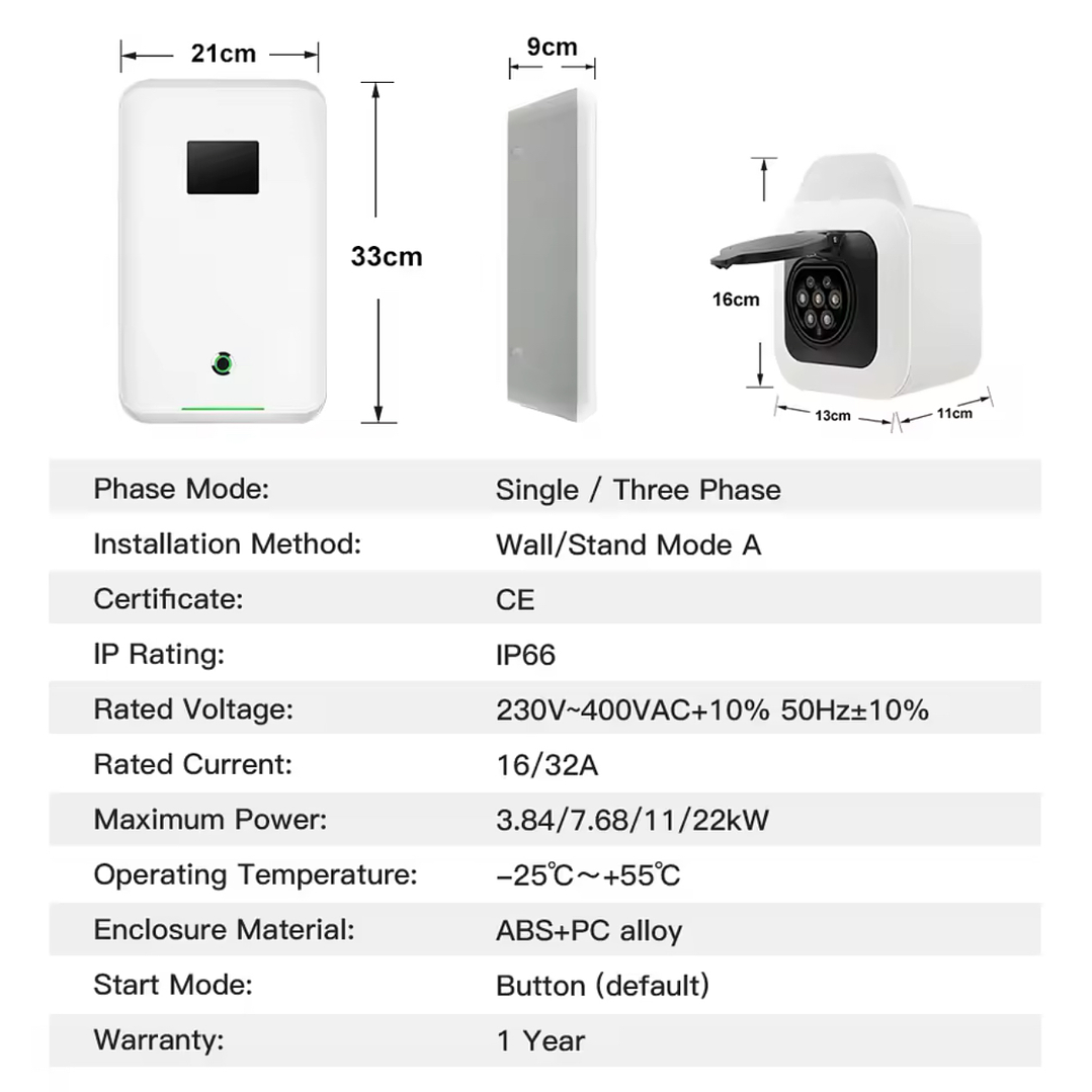 Wallbox Trifásico 22 kW | 32 A – Potência Máxima para Carregamento Rápido